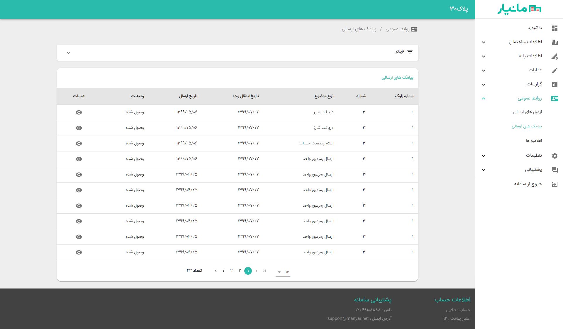 تصاویر محیط کاربری مانیار (مدیریت شارژ ساختمان)